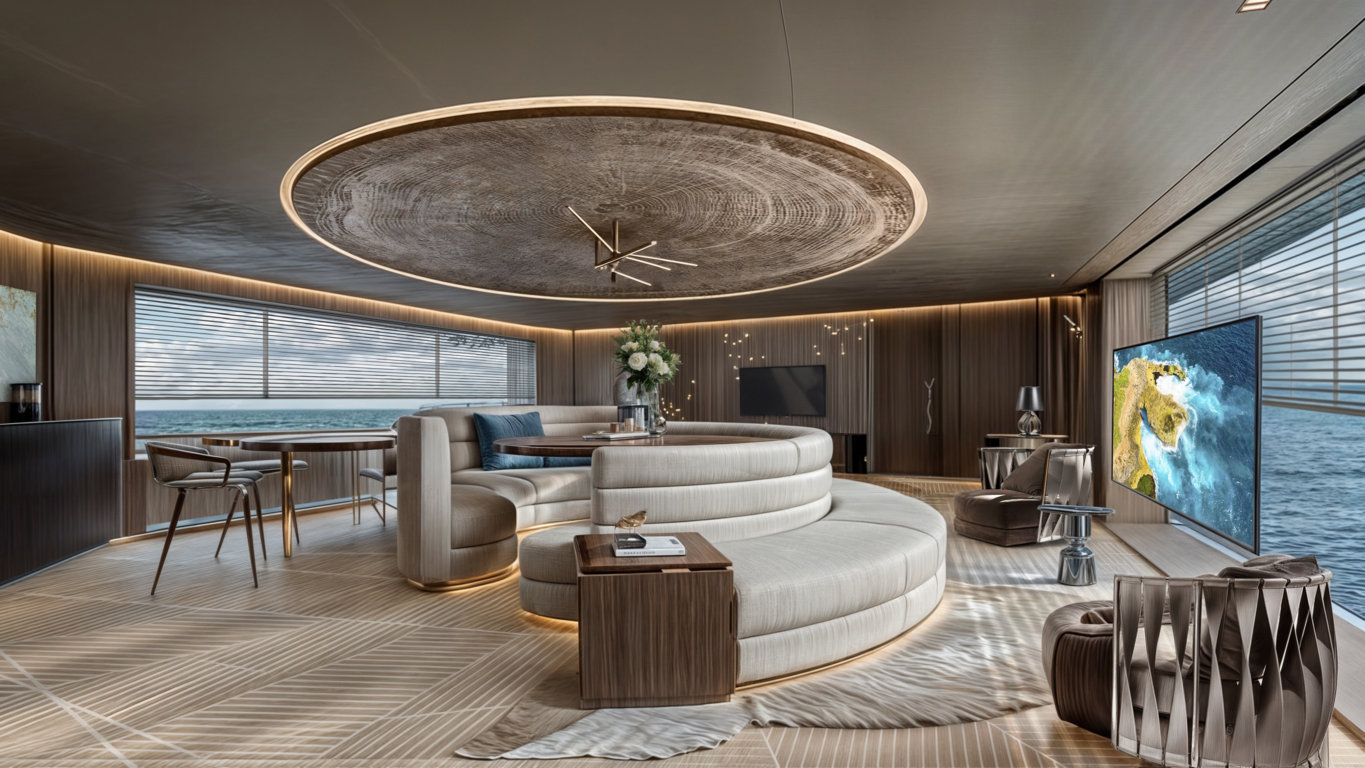 per la forza espressiva e l’originalità delle soluzioni, capaci di rileggere l’immaginario cinematografico di James Bond attraverso un linguaggio estetico di assoluta coerenza, secondo una narrazione che si sviluppa come un continuum, fondendo insieme diverse atmosfere e funzioni: lo yacht non appare come una somma di ambienti, ma un organismo unitario che trascina chi lo vive dentro una dimensione sospesa, quasi cinematografica. Ogni spazio diventa parte integrante di un percorso evocativo, in cui lusso e intimità si intrecciano senza ostentazione.