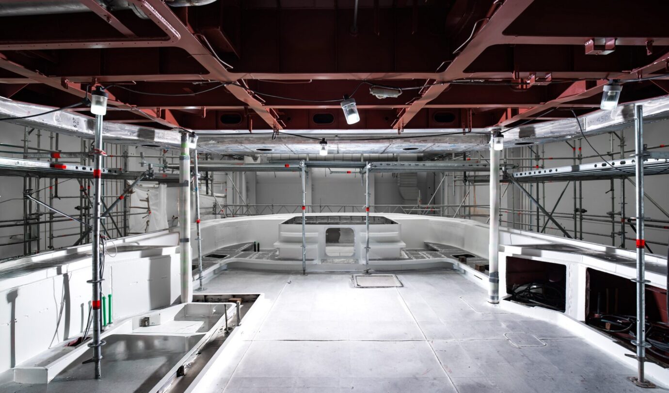 On schedule, compartmentalising the interior was completed in April, while, during the summer, the built-in furniture on the lower deck, for the crew and guest passengers, will begin. Work is continuing in the VIP areas on the owner’s deck, where the first cabins will be installed between June and July, and completed sections are being inspected to ensure all work is up to the highest standards. On the main deck, insulation of the main areas like the main saloon and bridge is complete, and the deck is currently being compartmentalised. Installing the first furnished areas on board, planned for the end of spring/beginning of summer, will represent an important achievement in furnishing the interiors: this is a part in construction where the yacht begins to take shape and character, based on the vision and specific requirements of the owner.