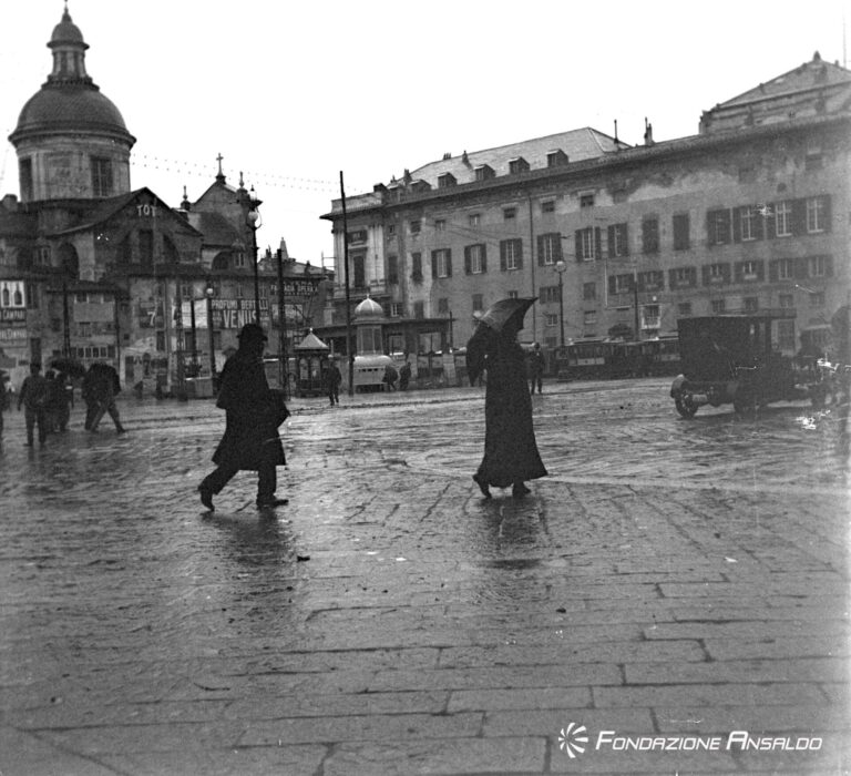 Nelle foto d’epoca della Fondazione Ansaldo si può ammirare inoltre la compassata eleganza dei capi di abbigliamento di inizio ‘900 lungo le strade sgombre. Anche solo il privilegio di sfogliare questi preziosi documenti è motivo sufficiente per iscriversi al concorso!