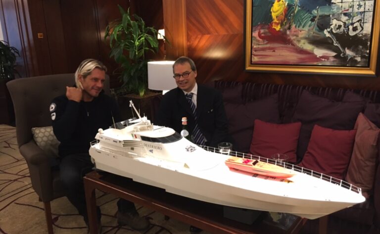 Un interesse, quello del consorzio per il Destriero, “l’unico e il solo yacht da corsa puro al mondo”, come lo definisce lo stesso Stern, che nasce dalla rivoluzionaria tecnologia con cui l’imbarcazione 30 anni fa è stata costruita. “Scafo completo in alluminio leggero – ricorda – 3 turbine LM1600 derivate dal caccia F/A-18 Hornet, propulsioni KaMeWa Jetstream invece di propulsori standard”.