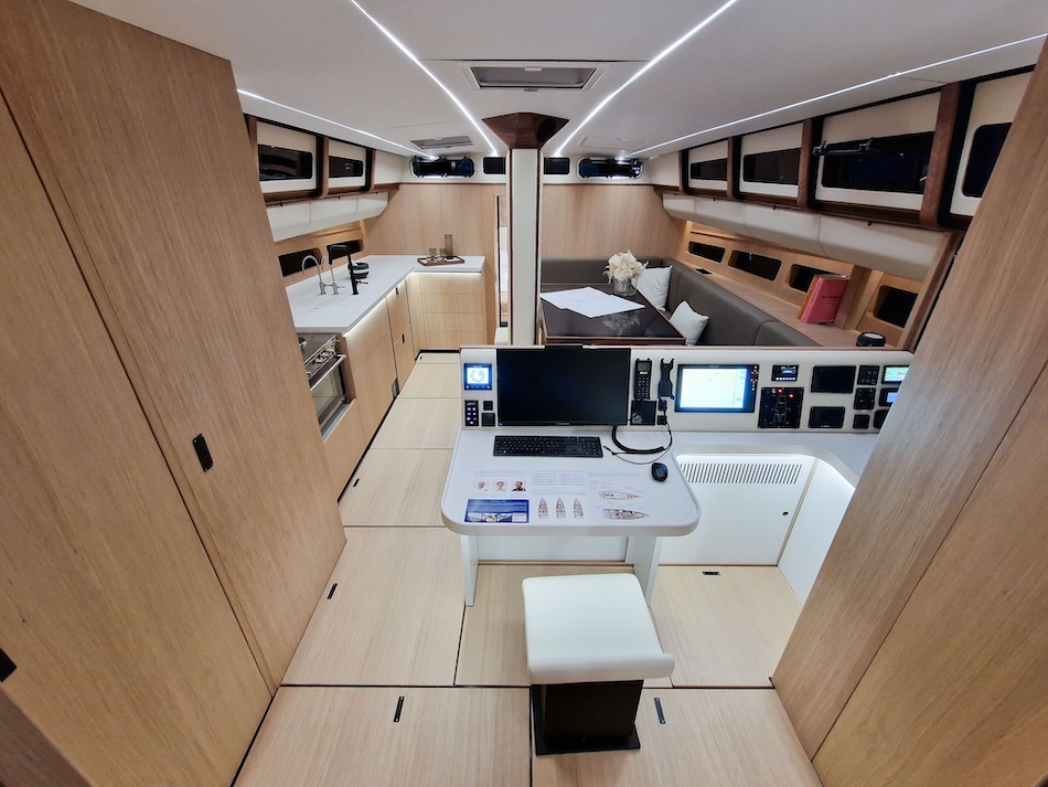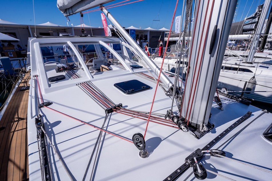 Tra le numerose soluzioni innovative spicca il sistema di copertura a “shed”, finestrature retrattili a scomparsa nel tettuccio del pozzetto, insieme agli impianti di bordo, al sistema fotovoltaico, ai banchi batterie e all’elegante allestimento degli interni, curato da Davide Gelmini di Rawood. Le vele sono invece realizzate da Elvstrom, le attrezzature di coperta da Antal, mentre lo scottame è firmato Gottifredi & Maffioli, tutti nomi che rappresentano una visione moderna di easy sailing, proprio quella che Stem 50 intende incarnare.