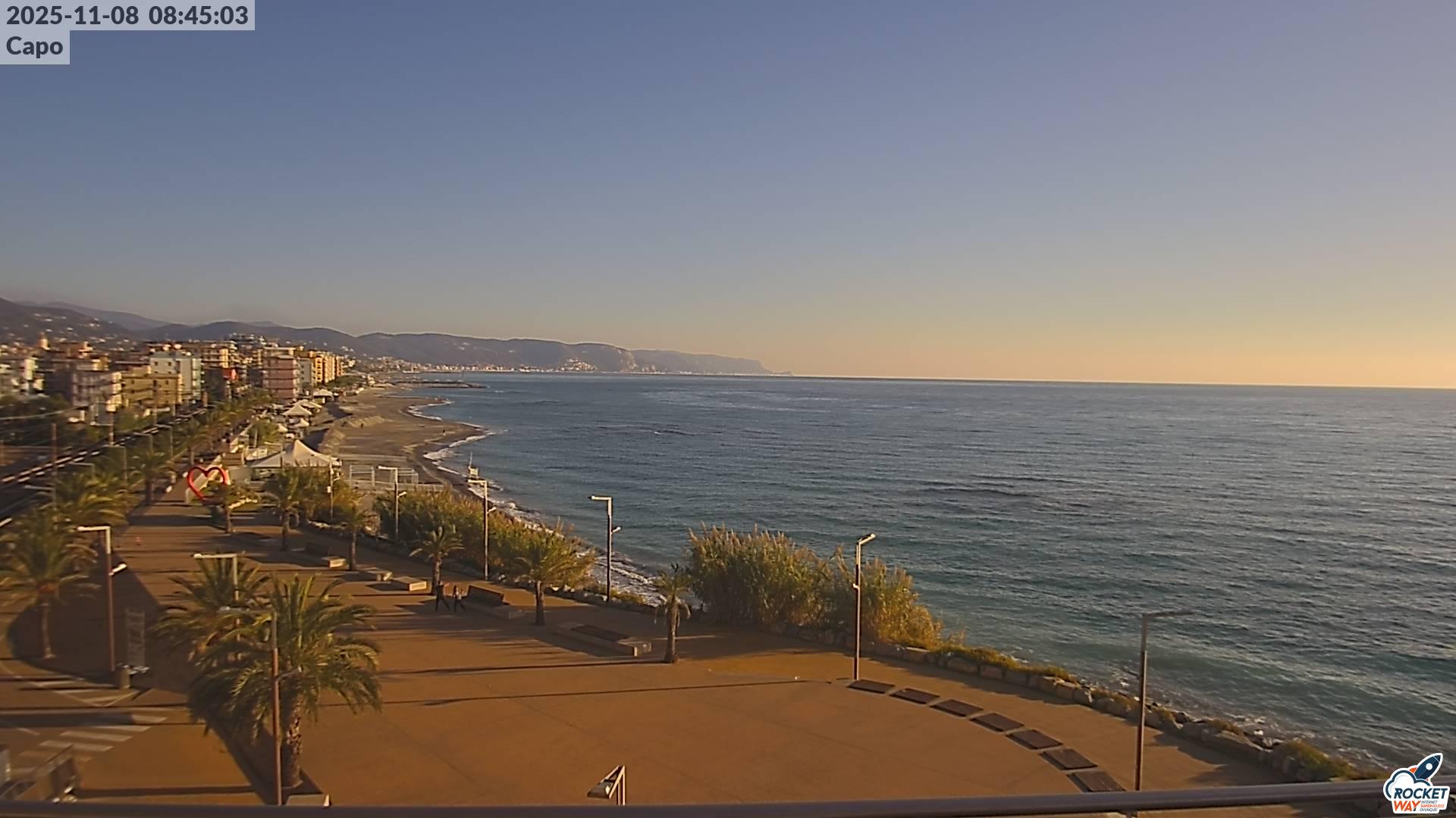 Ripresa del mare e della passeggiata di Borghetto Santo Spirito dalla webcam situata a Capo Santo Spirito.