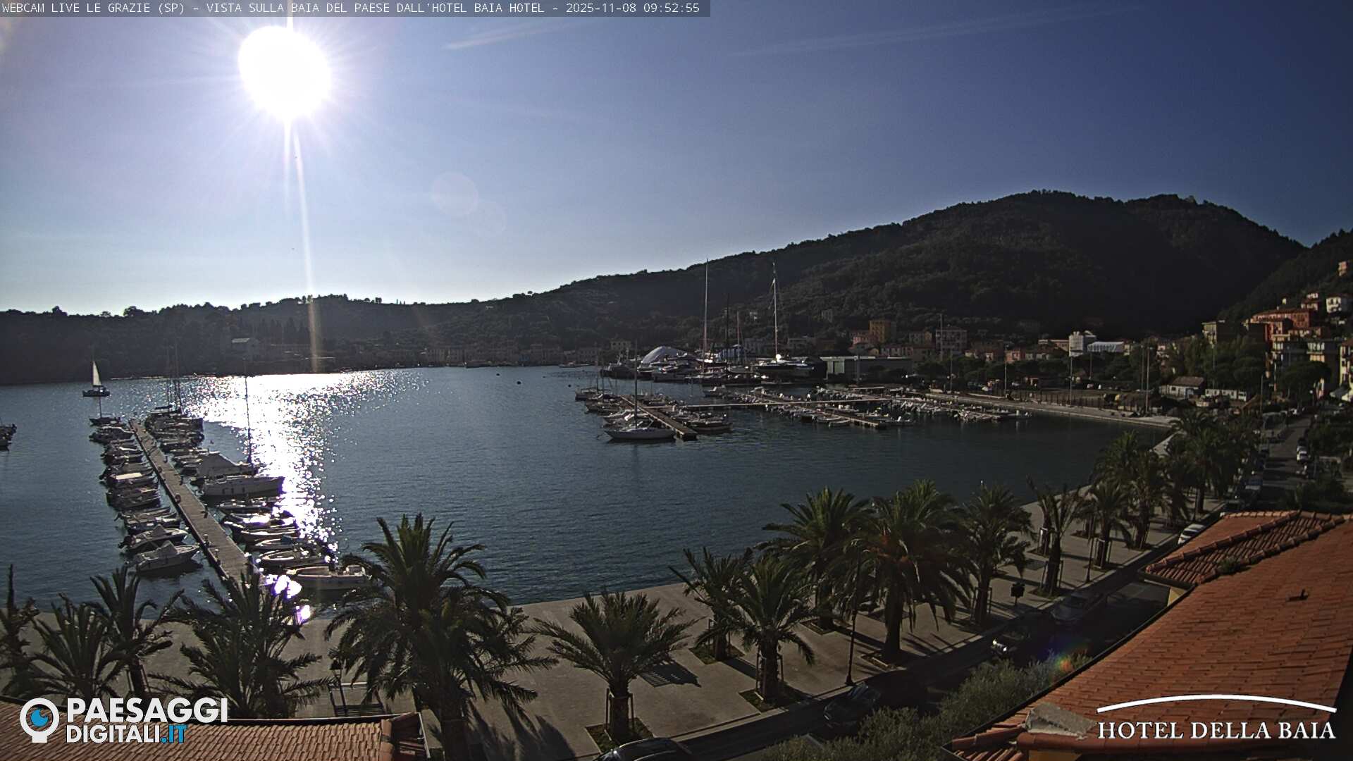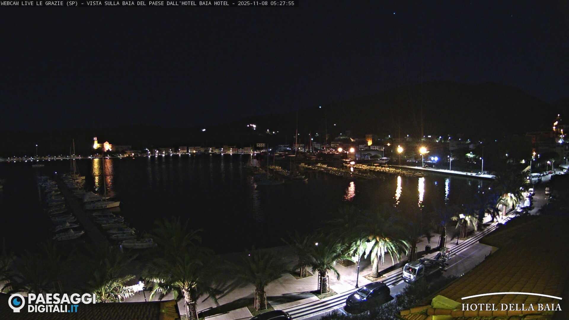 La webcam di Le Grazie, località appartenente al comune di Portovenere, è installata presso l’Hotel della Baia, in direzione Sud/Est, e riprende la baia del borgo. Sulla destra è ben visibile il porticciolo.