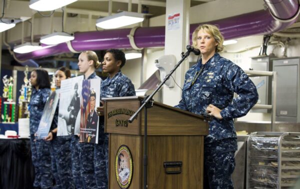 Durante il “National Women’s History Month, Bauernschmidt” si è presa del tempo per condividere con l’equipaggio di Lincoln la storia del suo viaggio per diventare il primo ufficiale esecutivo donna assegnato a una portaerei. “Riconduco tutto – ha detto l’ufficiale riferendosi a sua madre – a qualcosa che ho imparato molto presto da una donna molto importante nella mia vita: non perdere mai un’occasione“.
