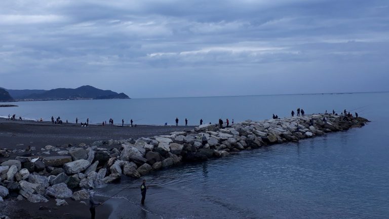 A Lavagna la mareggiata libera 100 mila orate e branzini d’allevamento. I pescatori prendono d’assalto moli e scogliere