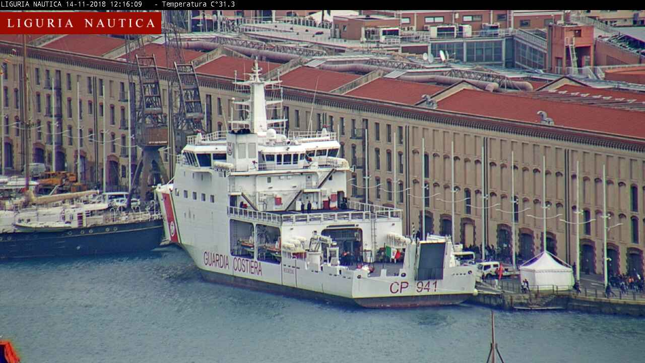 La Diciotti si trova in questi giorni nel capoluogo ligure per il Salone Orientamenti organizzato nell’area del Porto Antico, un salone che vuole essere una guida a livello italiano per l’orientamento dei giovani, con molte aziende private e tanti enti di formazione. Abbiamo puntato la nostra webcam in streaming sulla nave per permettere ai nostri lettori di vederla in diretta.