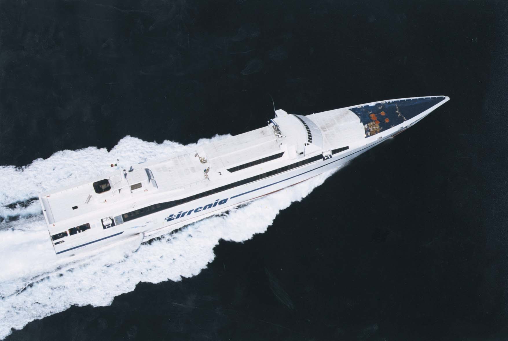 Il più lungo scafo della serie è stato però Federico Garcia Lorca della compagnia spagnola Balearia, nave di 115 metri interamente di alluminio, costruita nel 2001 e capace di navigare a 35 nodi anche con mare formato grazie all’utilizzo di un sistema di controllo del rollio sofisticatissimo, composto da pinne stabilizzatrici, intruder e T-Foil progettati e costruiti interamente “in house” con l’ingegnere Alessandro Cappiello, fondatore di CMC Marine. Progetto e dotazioni a cui oggi siamo abituati, ma che 25 anni fa erano totalmente fuori dagli schemi.