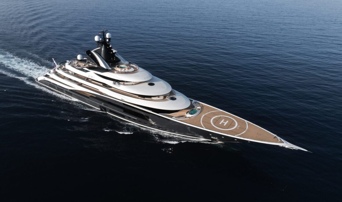 Il 104 metri Luminosity dei cantieri Benetti è invece un mix di collaborazioni tra i massimi brand di una gamma infinita di settori, dalla tecnologia interattiva al trasporto, dall’arredamento all’architettura, fino all’accoglienza e molto altro. A bordo i pannelli attorno alla scala principale, distribuiti lungo tutta la sua altezza, raffigurano una foresta che vive quando qualcuno sale: centinaia di piccoli fiori di magnolia bianchi in resina Corian si schiudono infatti a velocità variabili al passaggio degli ospiti. Altri dettagli raccontano storie e si ispirano a opere di grandi artisti, come i cerchi colorati di Damien Hirst ripresi sul pavimento in pietra calcare francese del main deck, oppure l’elemento a forma di occhio che richiama quello in legno di Man Ray e le forme ispirate ai collage di Matisse.