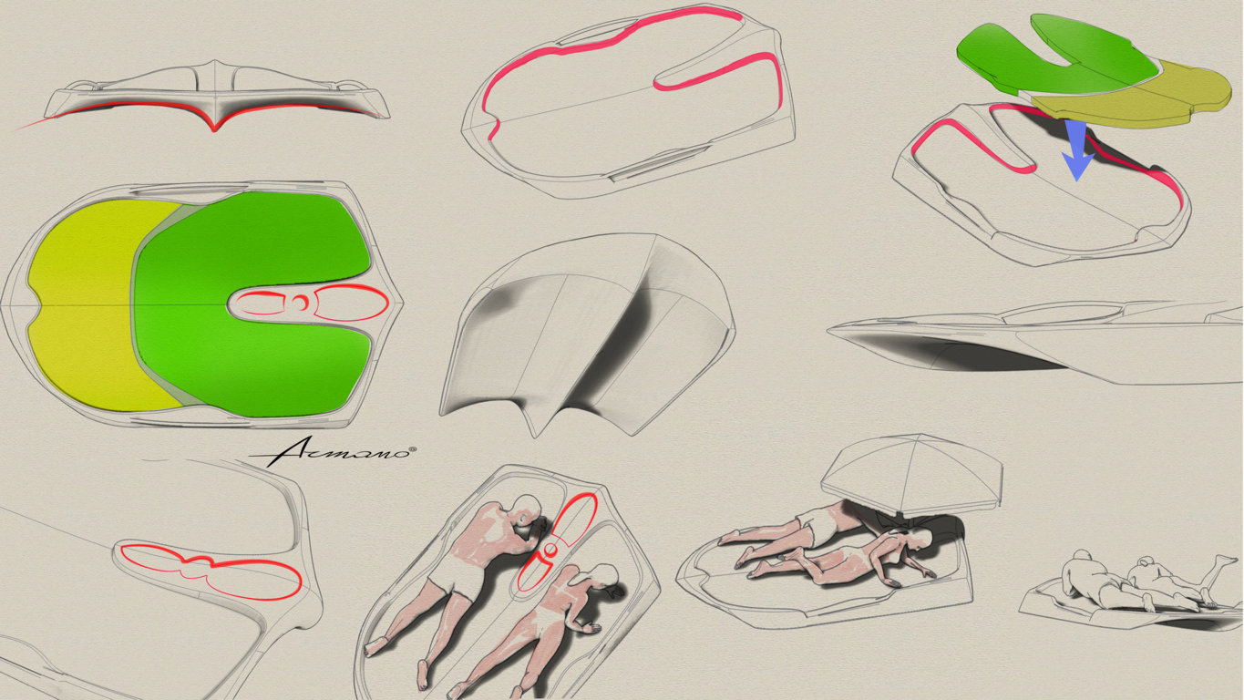 EC: È nata all’isola di Giannutri, a bordo di un piccolo gonfiabile scelto per evitare le rocce scure e bollenti. Piacevole stare in acqua, ma con il disagio di doversi muovere con attenzione per non cadere in mare con tutte le proprie cose. Da qui l’idea di realizzare qualcosa che consentisse di restare tranquillamente al largo tutto il giorno, lontano da spiagge affollate, rocce aguzze o bollenti: Île Flottant, lounge gonfiabile dotata di accessori e di propulsione elettrica per allontanarsi con discrezione e silenziosamente dalla folla. Molte altre idee sono poi scaturite da questo primo progetto, andatesi concretizzando nel New Mobility Boat, lounge a scafo rigido presentata in anteprima al Salone di Genova.