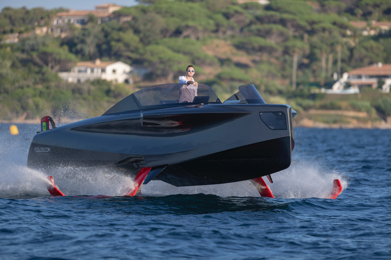 In qualsiasi allestimento, Foiler ad ali spiegate, apribili semplicemente schiacciando un pulsante, può raggiungere la velocità di 75 km/h grazie ad un motore di propulsione ibrido diesel-elettrico da 300 hp, sollevandosi di un metro e mezzo sopra alla superficie dell’acqua. E portando fino a otto passeggeri.