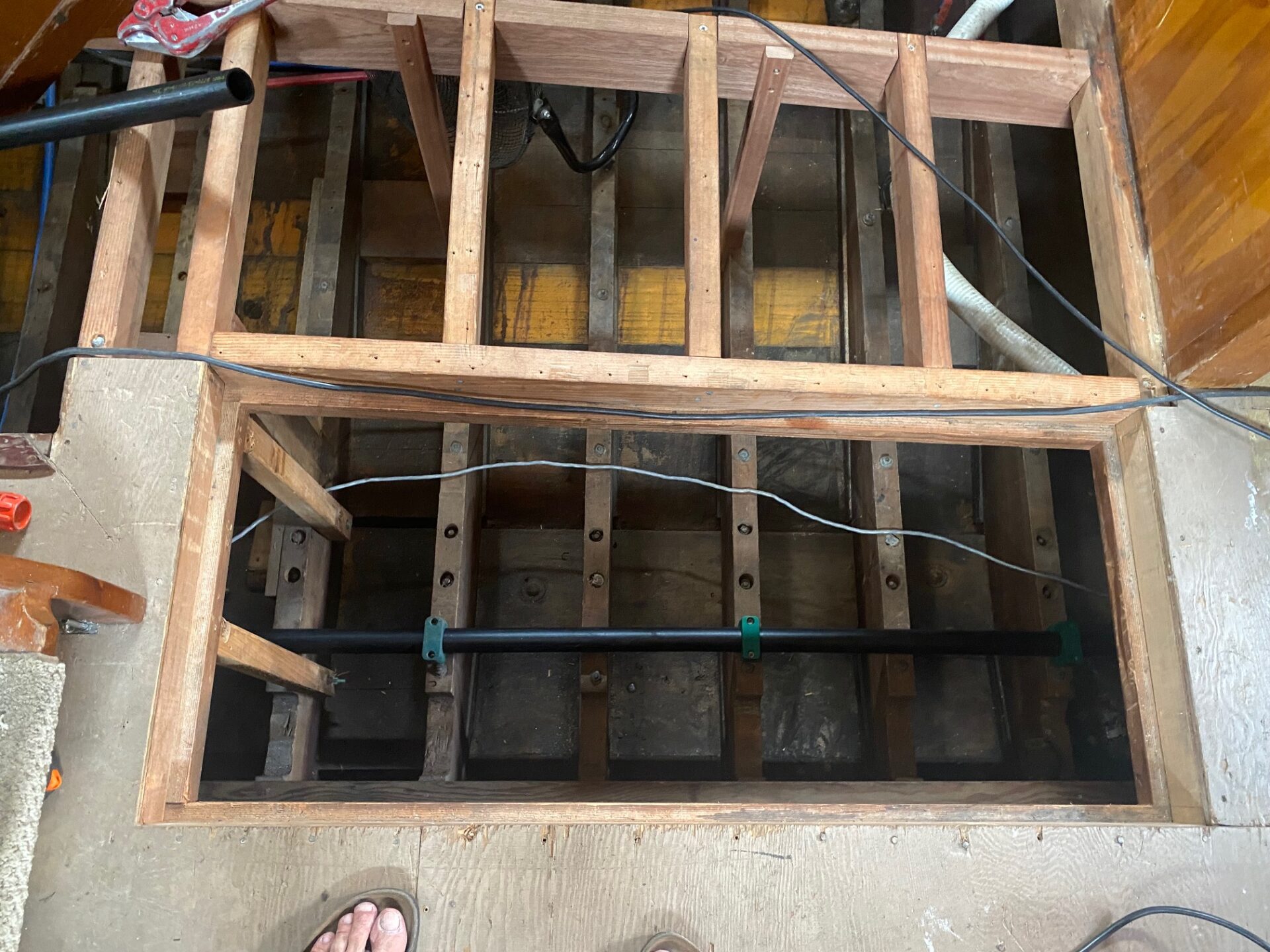 In addition the waste disposal system was redone and the interior woodwork was refurbished. The entire deck was covered in teak and the boat was revarnished. The carpenters from Cantieri Navali di Sestri also reattached the planking and recaulked the hull.