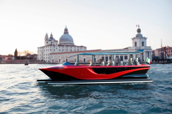 “This design – adds the designer – comes from the need to stay dry during transfer from the yacht to the pier and vice versa, It is an exclusively electric vehicle that flies, at adjustable height, to make embarkation easier. And obviously, it can also enter protected waters.”