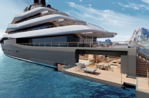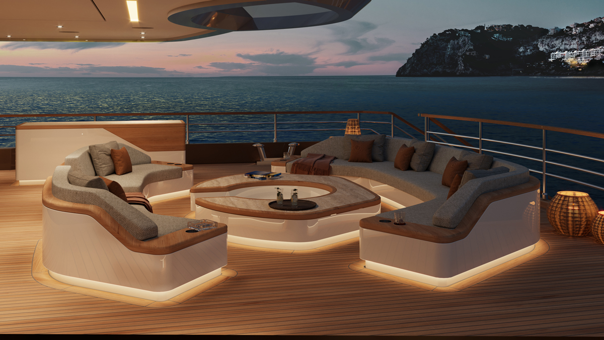 A characteristic of the new superyacht is also its exclusive beach club based on the patented The Island (TM) concept by Nauta Design: multiple collapsible platforms that expand on the one directly accessing the water and transforming the entire available surface area in a huge 117 square metre space. The exterior and interior spaces are then directly connected, so as to have an open plan layout to freely circulate around the entire perimeter of the yacht: a solution offering constant contact with the water without equals for a superyacht of this length.