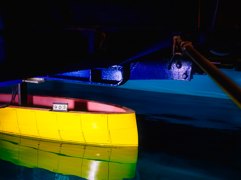 The hull design, optimised through a number of tests in the tanks of the Solent University in Southampton, and the pin and gyroscopic stabilisers eliminate rolling when the vessel is in roads. The Volvo pod engine system, which thanks to its compactness frees up space in the lower deck, guarantees a speed of 20 knots in “hyper displacement” mode, and uses much less fuel.