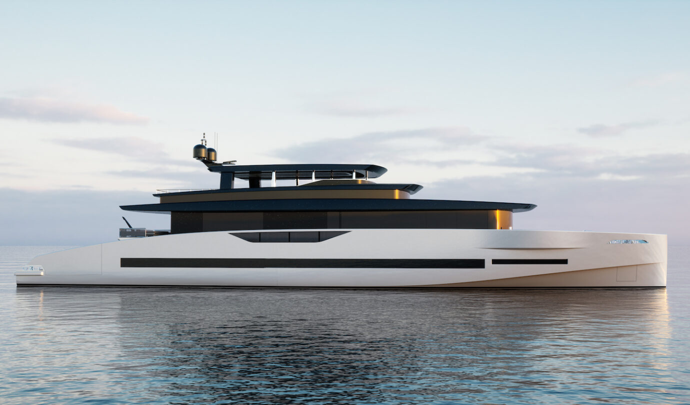 Yes, absolutely. The choice of material was central to the entire project. For the hull and superstructure we used a light, resistant material, aluminium, which is structurally efficient and reduces overall weight. For the interior, the designer Marco Casali focused on a combination of luxury, sustainable and lightweight materials.