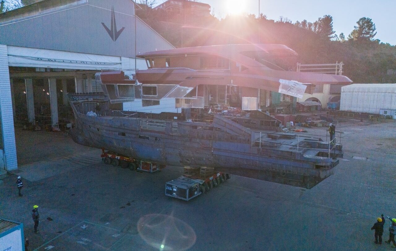 Antonini Navi have announced the successful joining of the hull and superstructure of the semi-custom superyacht, Seamore 34. The steel hull of the Seamore 34 has been joined to the aluminium superstructure using bimetal joining. The next step is the compartmentalise the interiors, designed and developed by Hot Lab.