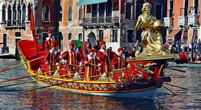 A Venezia la prima domenica di settembre, nell’antica laguna dei Dogi, è il tradizionale giorno della Regata Storica, la popolare festa sul Canal Grande che saluta la fine dell’estate e che rappresenta il clou delle competizioni remiere delle società di voga di Venezia e terraferma.