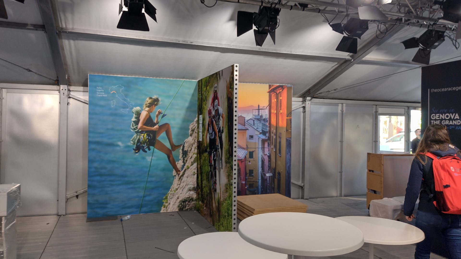 Il Pavilion di Genova sarà in prima linea, proprio dietro alle barche della regata (padiglione 17). Un ledwall posizionato di fronte alla struttura mostrerà le bellezze di Genova, della Liguria e dell’Italia. Attraverso la scannerizzazione di QR Codes si potranno approfondire vari temi. Le pareti del padiglione “racconteranno” il territorio attraverso immagini iconiche: la Lanterna, le botteghe storiche e i tipici “carruggi”, le Cinque Terre, il pesto ma anche il gelato e il caffè.