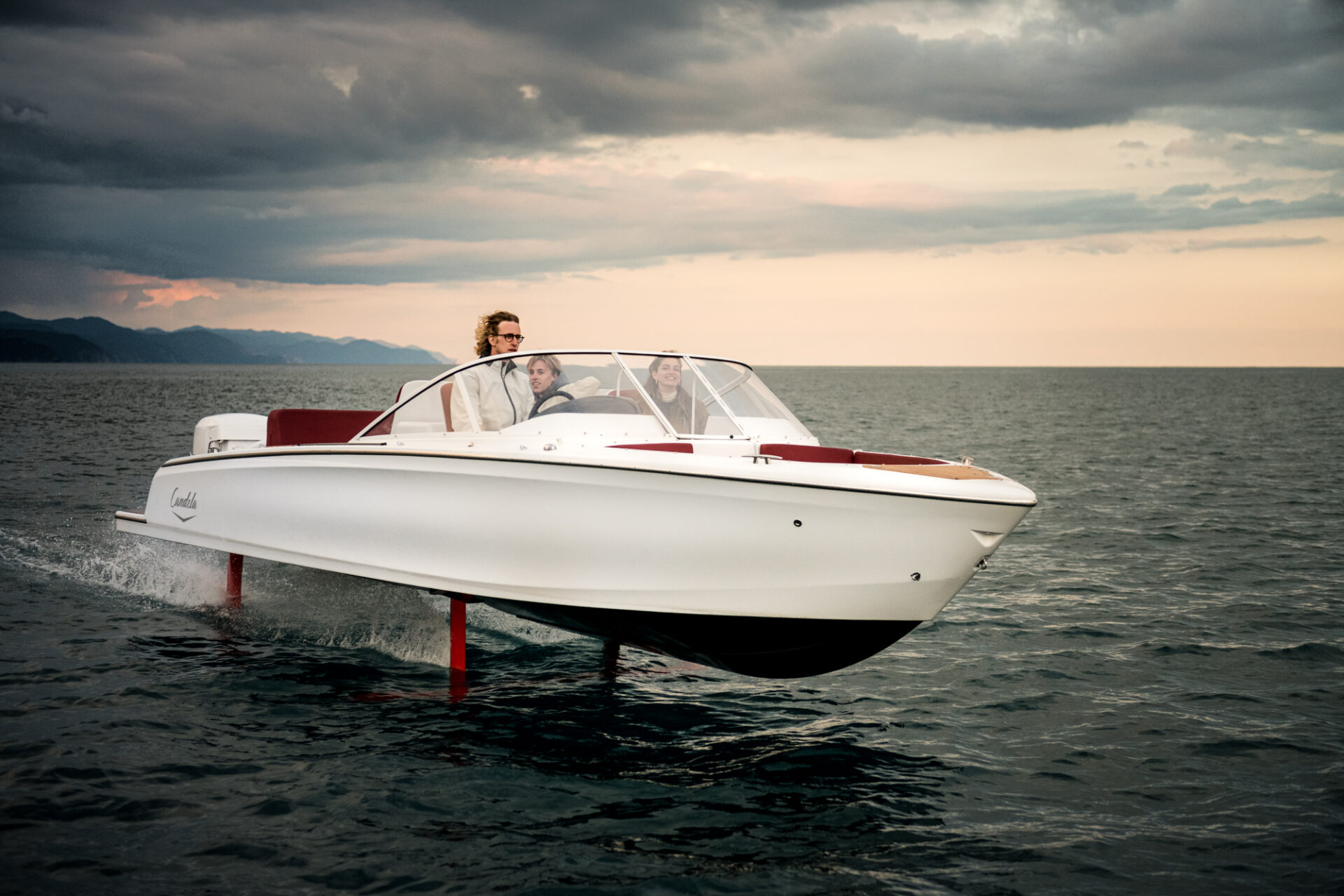 Si può proprio parlare di decollo perché, grazie alla tecnologia hydrofoil, con l’uso di foil (alettoni) sotto la chiglia, lo scafo dell’imbarcazione si solleva riducendo l’attrito dell’acqua di circa l’80%. I foil, completamente sommersi, funzionano da vere e proprie “ali subacquee”, in stile Luna Rossa, rendendo possibile la navigazione per lunghe distanze con la sola energia della batteria.