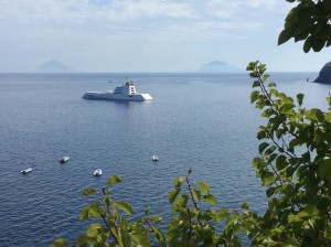 Anche se lo abbiamo immortalato più volte, per la sua estetica al dir poco particolare ed eccentrica il megayacht A è sempre un soggetto interesante e così, armati di tablet e macchina fotografica, siamo andati a cercare qualche punto panoramico per immortalare il megayacht A nel meraviglioso scenario di Salina.