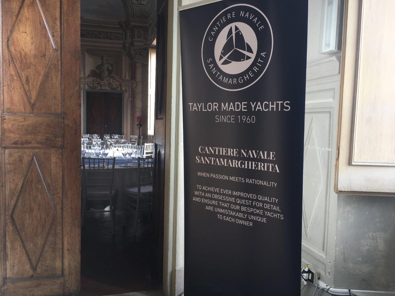 Dopo un aperitivo nel giardino del castello medievale, il Ceo Ettore Cicchelero ha presentato il suo nuovo progetto e la filosofia del cantiere che, dopo due anni di chiusura, riparte con nuove produzioni. Il Cantiere Navale Santamargherita riprende quindi il suo cammino e può fare ancora affidamento sulla matita dell’architetto Aldo Cichero.