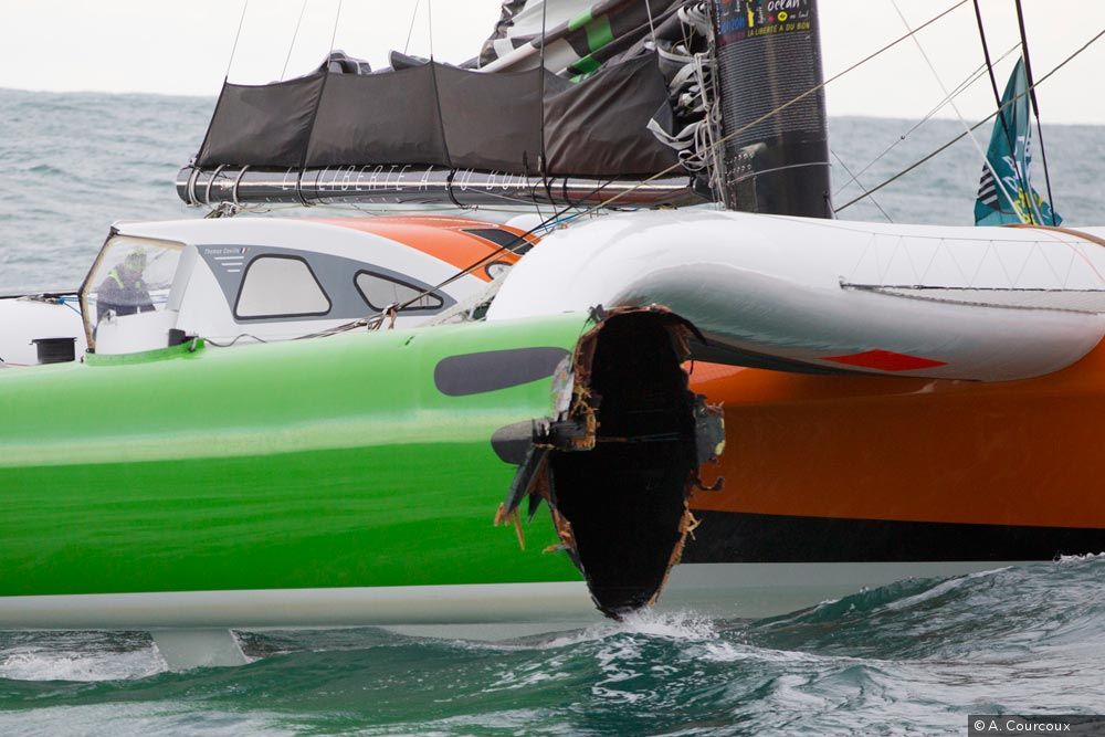 Route du Rhum boom boom: Sodebo sbatte contro un cargo, si rovescia il Class 40 Sabrosa. FOTO