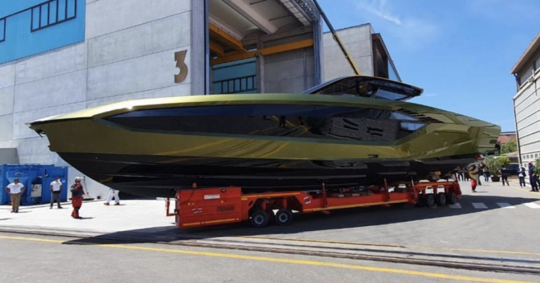 Un vero e proprio bolide dei mari, lungo 63 piedi (20 metri fuori tutto) e dotato di una potenza di 4.000 CV sprigionati da due motori MAN bi-turbo diesel “24 mila” di cilindrata (24 litri).  La larghezza dello yacht è di 5,4 metri, mentre l’utilizzo della fibra di carbonio, elemento tipico delle vetture Lamborghini, garantisce la classificazione nel range delle imbarcazioni ultraleggere, con un dislocamento di 24 tonnellate, cioè 24.000 kg.