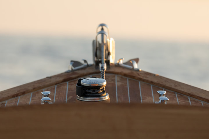 Un day cruiser semiplanante classico ed elegante, meno impegnativo nella manutenzione grazie allo scafo di vetroresina ma rifinito artigianalmente con essenze lignee pregiate, veloce e stabile anche con un mare impegnativo. Un mix tra tradizione e innovazione che si può leggere anche nella dotazione tecnica di bordo: gps, elica di manovra a prua, comandi dei flap di poppa, del verricello elettrico, conta-catena accostati a strumenti analogici dalla linea più classica, per controllare il funzionamento del motore.