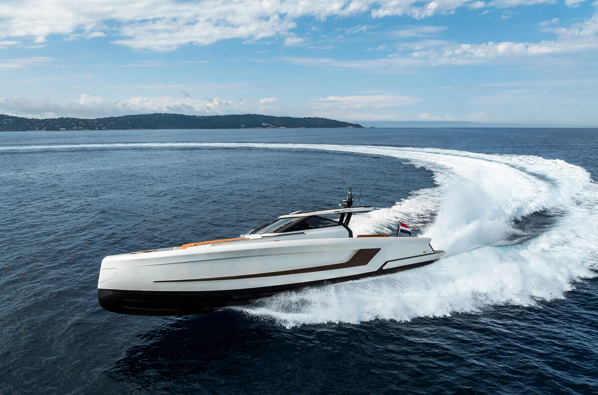 Elementi moderni e scultorei come la sovrastruttura angolare si combinano con la prua rovesciata e la sheerline inversa per creare uno stile mozzafiato, a cui si aggiungono i raffinati dettagli in stile supercar, che si estendono fino ai minimi particolari: dalle prese d’aria della sala macchine alla poppa larga e ribassata, fino ai cuscini esterni, caratterizzati da una partizione accuratamente progettata per enfatizzare le linee dinamiche della barca.