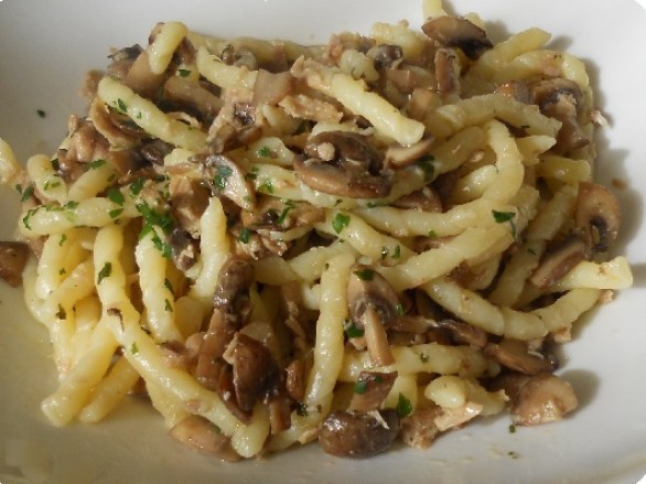 320 gr di fusilli di pasta fresca 600 gr di funghi chiodini Spicchio di aglio Mazzetto di prezzemolo Olio EVO Sale