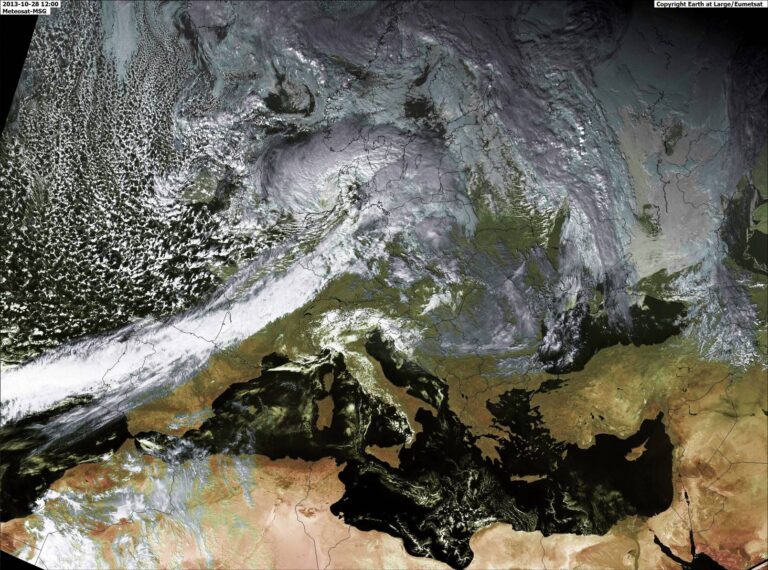 Il Mediterraneo e l’arrivo del fronte freddo visto dal satellite Meteosat