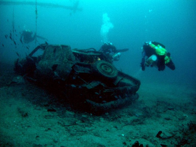 Anche il relitto, adagiato su un fianco, è spettacolare ma le emozioni del parcheggio automobilistico sommerso sono inimitabili. Mi ricordo un polpo abbarbicato con i suoi tentacoli al volante di una Fiat che sembrava volerla mettere in moto. Attenzione solo alla profondità. Qui si picchia attorno ai 40 metri e anche di più. Ma vi assicuro che l’immersione li vale tutti.