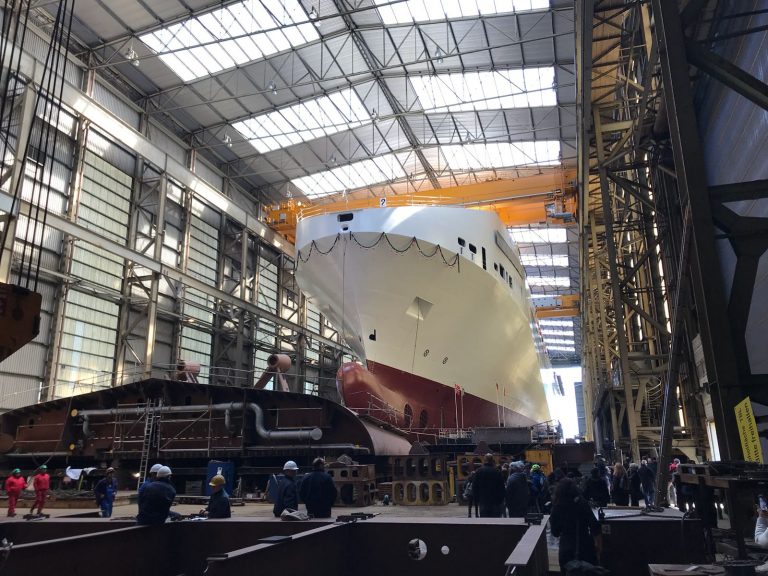 Il varo ha coinciso con l’ingresso della nave gemella in linea di produzione in un cantiere, quello di Flensburg, sul Baltico, fondato quasi 150 anni fa, nel 1872 e diventato leader riconosciuto nella tecnologia per navi ro-ro merci e per ferry passeggeri e merci.