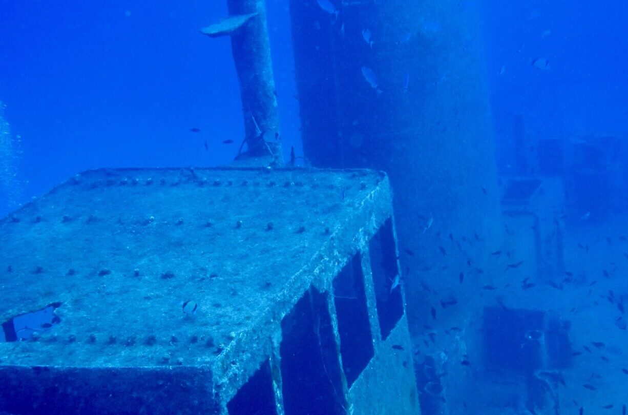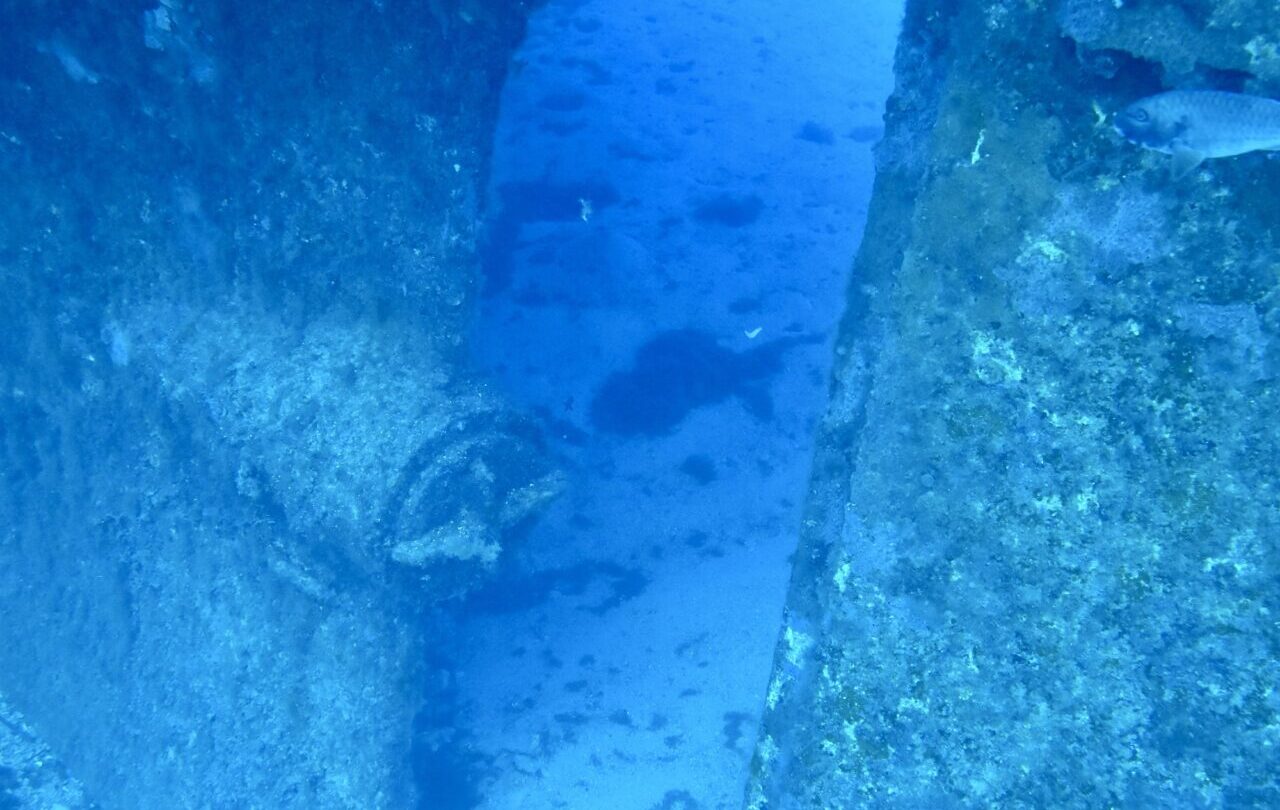 L’ho già scritto, le navi sommerse di solito parlano, basta solo saperle ascoltare, e questa pare voglia farmi sapere che è felice di non essere stata demolita ma di trovarsi in questo splendido mare con tantissimi subacquei che scendono sotto la superficie apposta per visitarla. Oltre a queste sensazioni, mi godo anche la serenità di essere sceso con un esperto istruttore bretone di nome Sylvain e con la mia guida Daniele. Questa volta il subacqueo più scarso sono io. Tutto riposo, quindi. Giriamo a lungo fra le infrastrutture, sul ponte, lungo lo scafo per osservare ogni particolare della piccola nave, entrando nel relitto ogni volta che ci viene concesso.