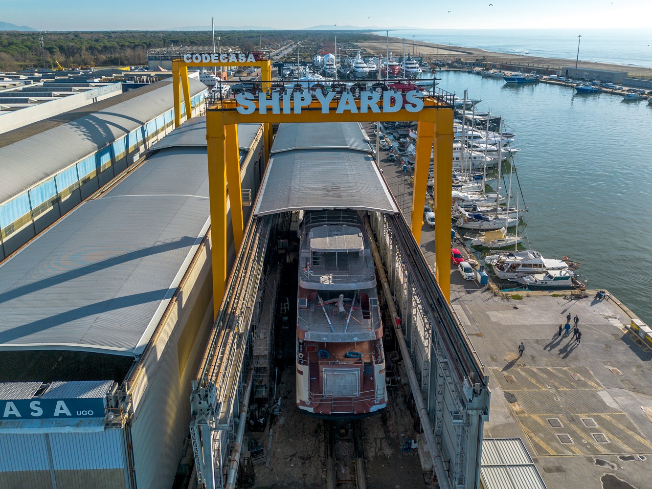 Il Codecasa 43-Costruzione C124 dei Cantieri Navali Codecasa è stato trasferito dalla sede operativa di Pisa a quella di Viareggio per poter essere terminato per la consegna, prevista per l’estate 2024. Sesto esemplare di questa fortunata serie, l’imbarcazione è uno yacht dislocante totalmente custom di 43 metri, con scafo in acciaio e sovrastruttura in alluminio, progettato dal team tecnico del cantiere.