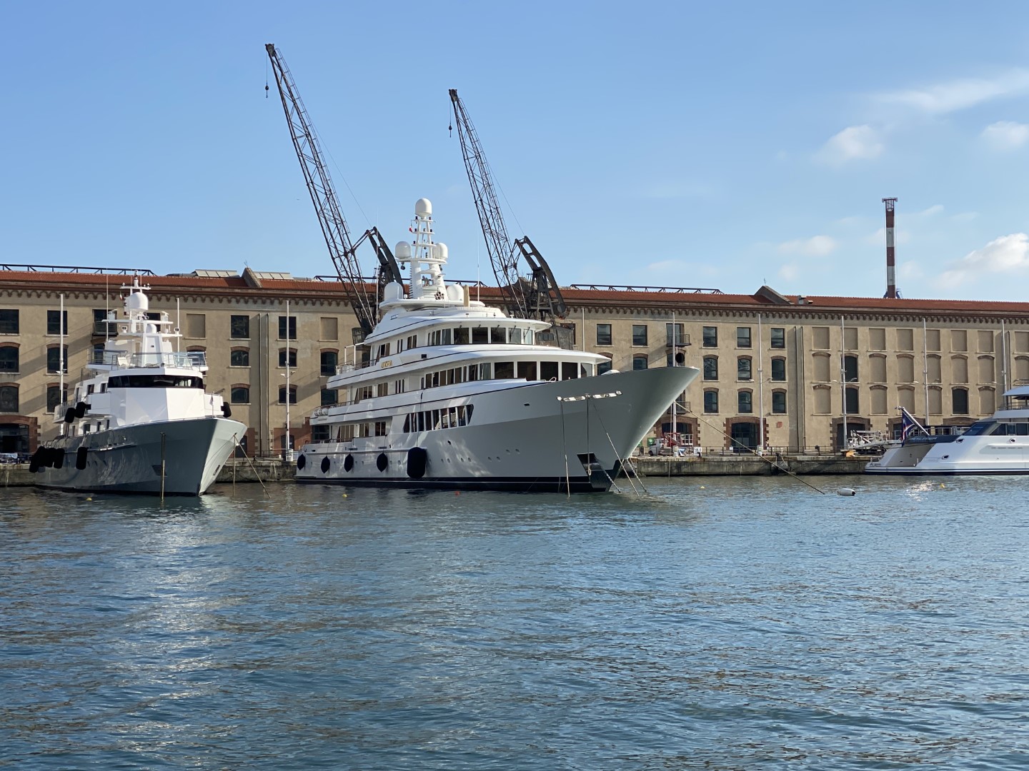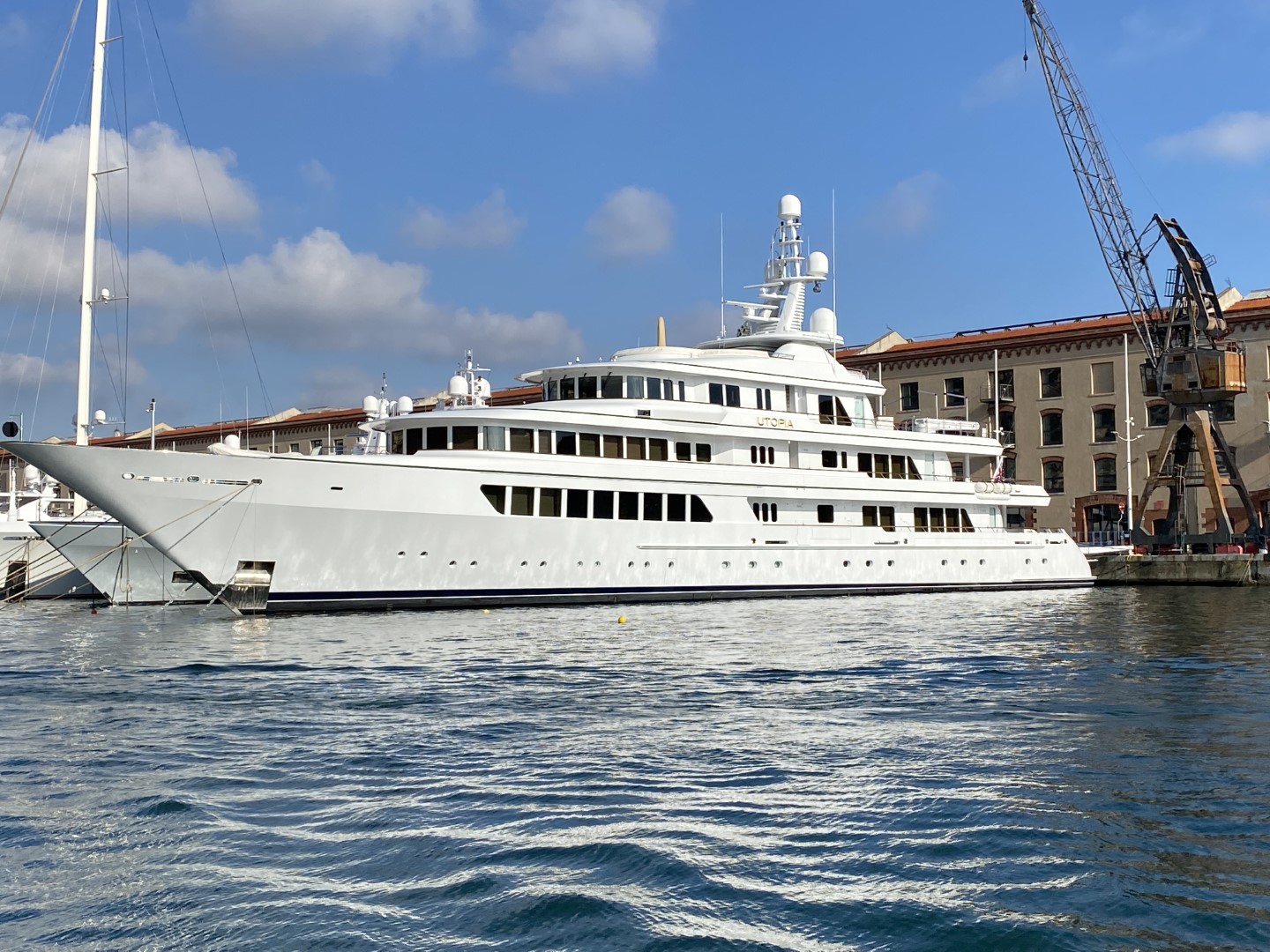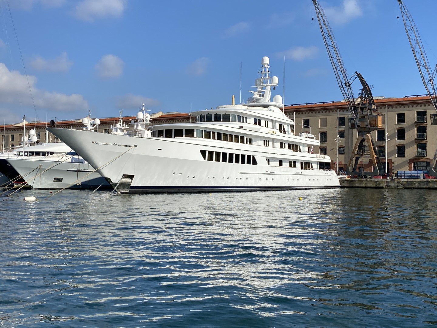 Abbiamo avvistato il megayacht “Utopia” a Genova, ormeggiato al Marina Molo Vecchio, al Porto Antico, proprio a poppa di un altro gigante dei mari, il megayacht Madsummer.