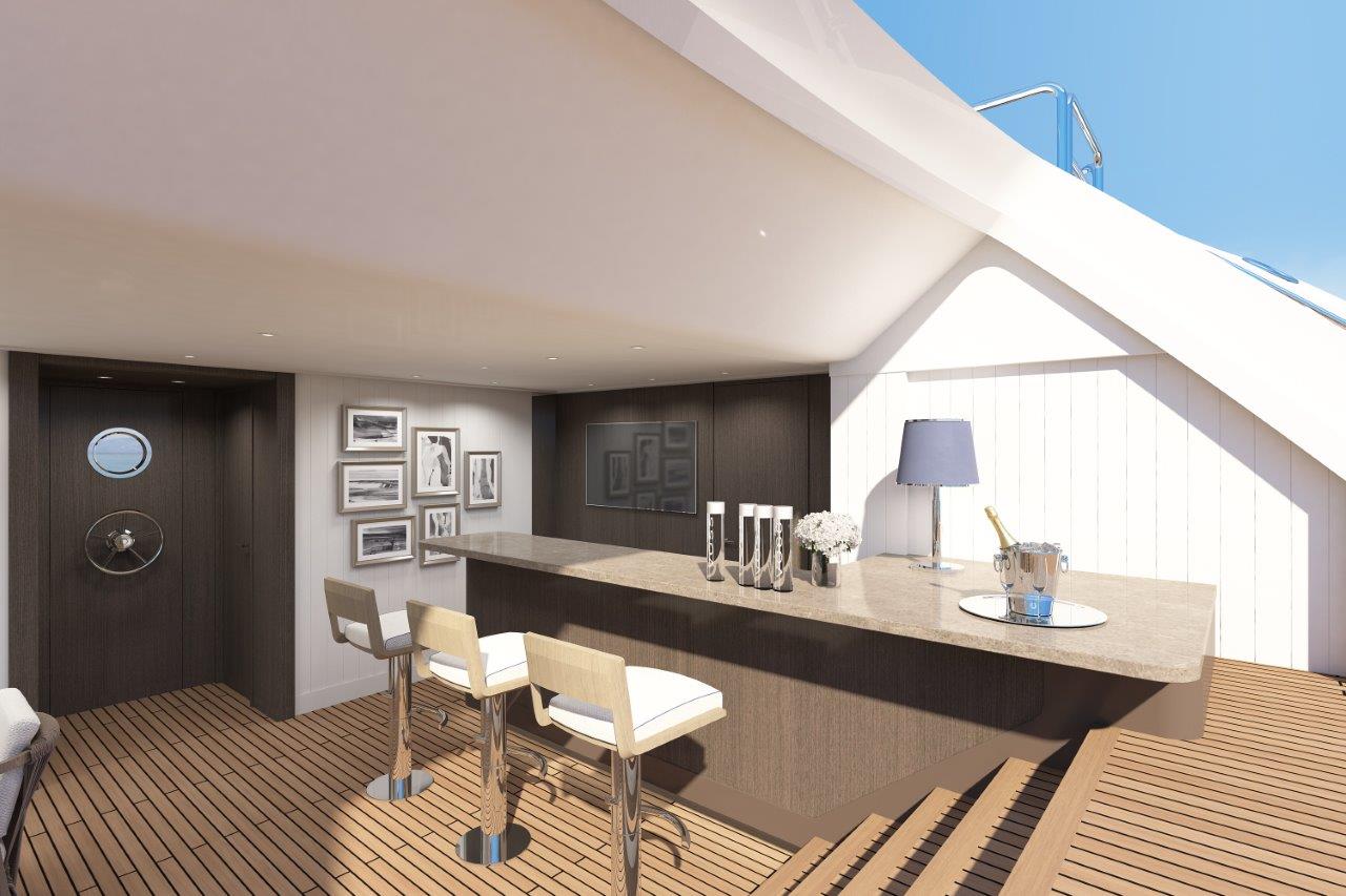 Tutti i ponti sono serviti dall’ascensore in vetro. Dalla cena all’aperto, sulla terrazza di poppa, al grande solarium con la sua vasca idromassaggio, dal salotto di prua fino al beach club, armatori e ospiti troveranno sempre il luogo perfetto per rilassarsi.