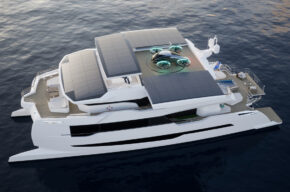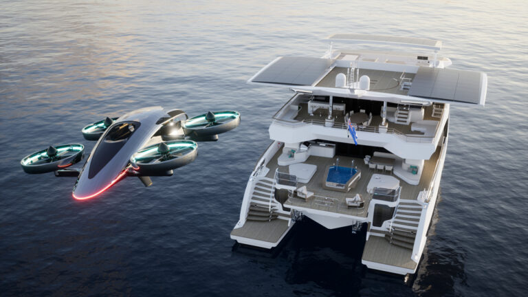“Costruiamo le nostre barche – conclude il Ceo – con energia solare e propulsione elettrica. Questo significa che non dobbiamo rinunciare a molto spazio per ricavarne una sala macchine. In questo modo guadagniamo spazio per metterci cose come una palestra o un deposito extra per i tender. Infine, il raggio extra della forma del catamarano significa che il tetto può ospitare un velivolo eVTOL che, se collegato alla rete elettrica di bordo, verrà ricaricato in un paio d’ore“.