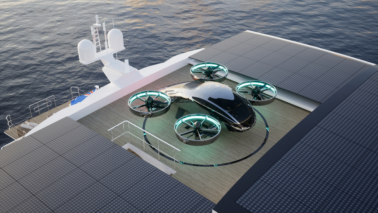 Costruiamo le nostre barche – conclude il Ceo – con energia solare e propulsione elettrica. Questo significa che non dobbiamo rinunciare a molto spazio per ricavarne una sala macchine. In questo modo guadagniamo spazio per metterci cose come una palestra o un deposito extra per i tender. Infine, il raggio extra della forma del catamarano significa che il tetto può ospitare un velivolo eVTOL che, se collegato alla rete elettrica di bordo, verrà ricaricato in un paio d’ore“.