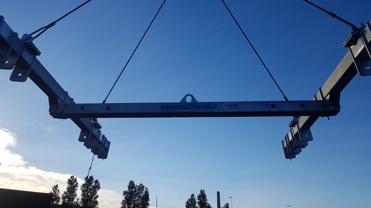 Ma le novità che NavalTecnoSud propone non si limitano a questi nuovi cavalletti. La ditta barese ha pensato anche a come agevolare le operazioni di carico, varo e alaggio delle navi durante la loro permanenza in cantiere. Per questo ha progettato il bilancino ad H, (BIH), realizzato in molteplici misure personalizzabili (da 3.ooo mm x 3.ooo mm a 10.000 mm x 10.000 mm) che si adatta facilmente a barche di piccole, medie e grandi dimensioni, sia a motore che a vela, rivelandosi ideale anche i catamarani. A seconda della larghezza dell’imbarcazione, infatti, gli assi laterali sono predisposti per scorrere sull’asse centrale, mentre per gestire barche con differenti lunghezze, vi sono predisposizioni di aggancio con fasce.